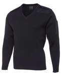 50% Wool for warmth, and 50% Acrylic for easy care,Woven epaulette with Velcro closure on both shoulders,Woven elbow patches and two woven patch pen pockets on sleeve,Full fashioned and linked,Ribbed sleeve cuffs and basque